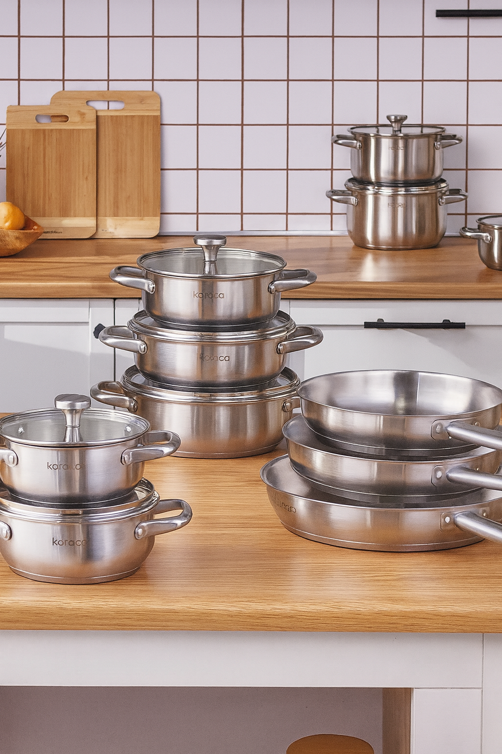 Karaca Emirgan 8 Parça Paslanmaz Çelik Tencere Seti – Enerji Tasarruflu Özel Taban