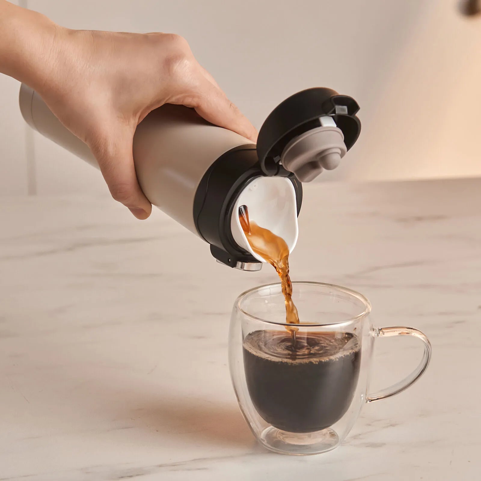 With its 24-hour hot and 8-hour cold keeping capacity, it offers practical use at work, sports, school, and travel. Its minimal and modern cream-colored design complements any style.