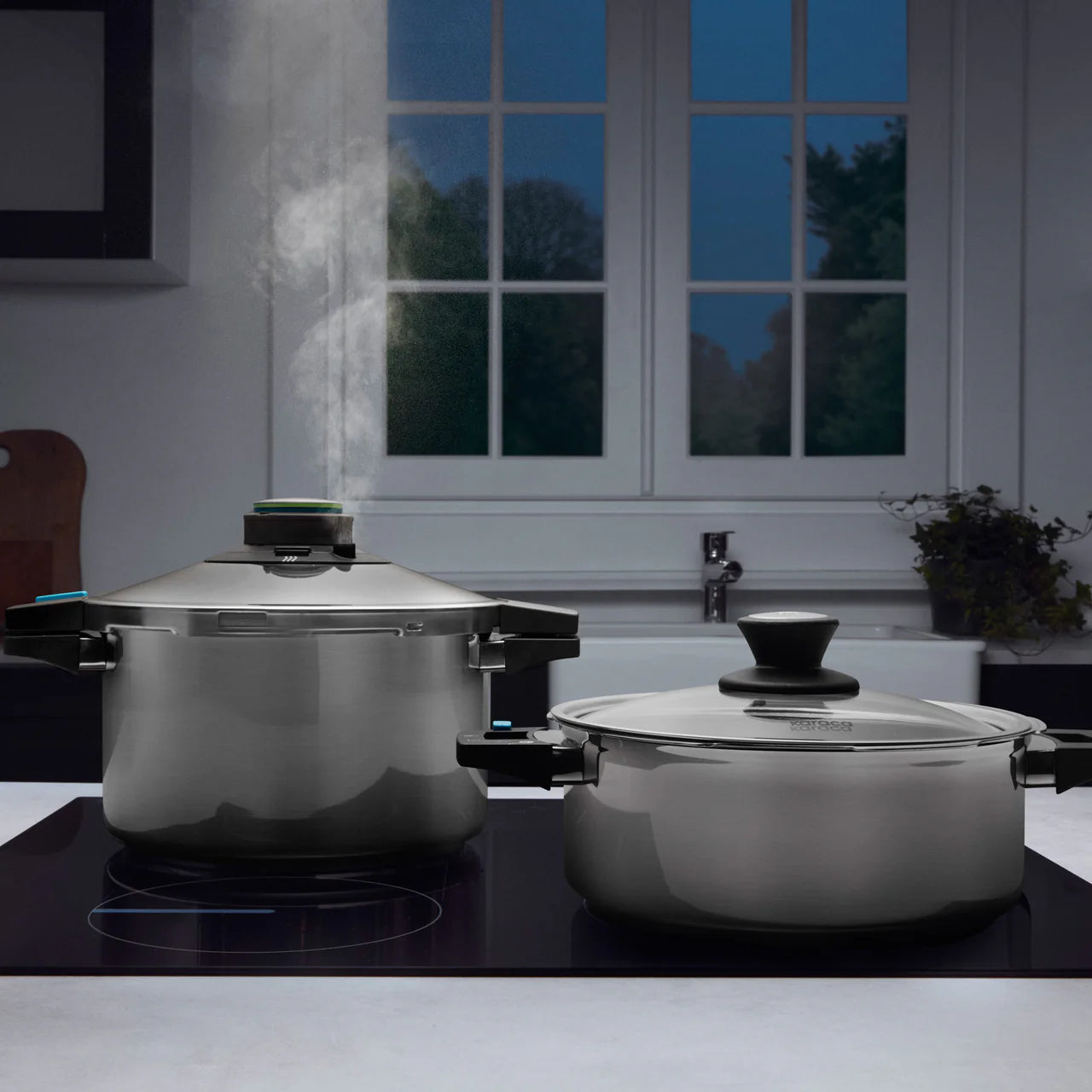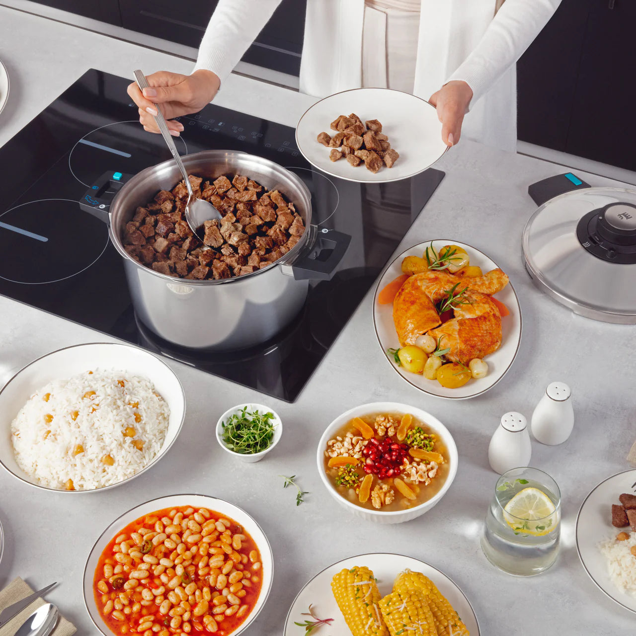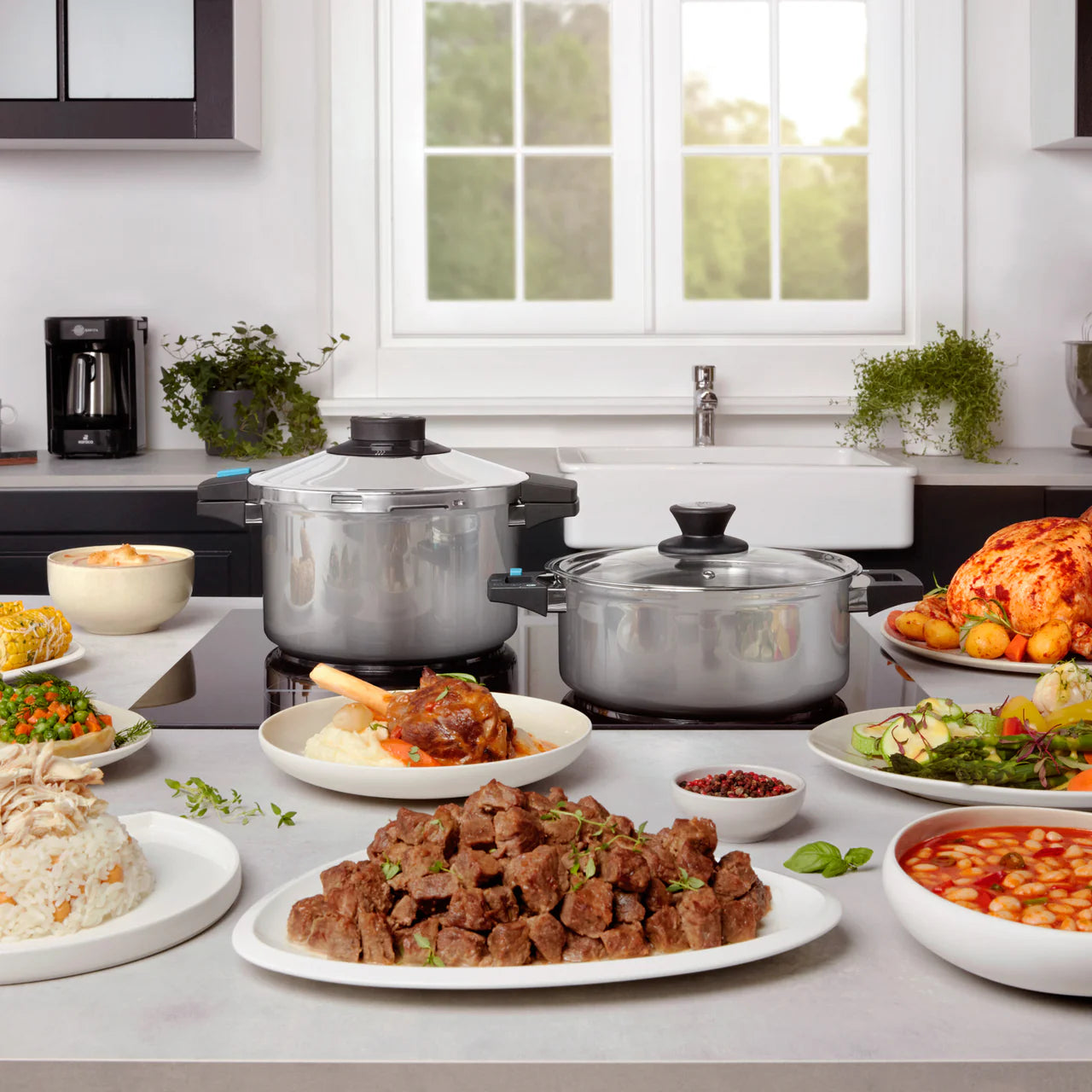 Ergonomik, el yakmayan kulpları ve 6’lı güvenlik kilidi ile yüksek güvenlik sağlar. İndüksiyon dahil tüm ocaklarda kullanılabilir ve contası çıkarılarak bulaşık makinesinde kolayca temizlenebilir.