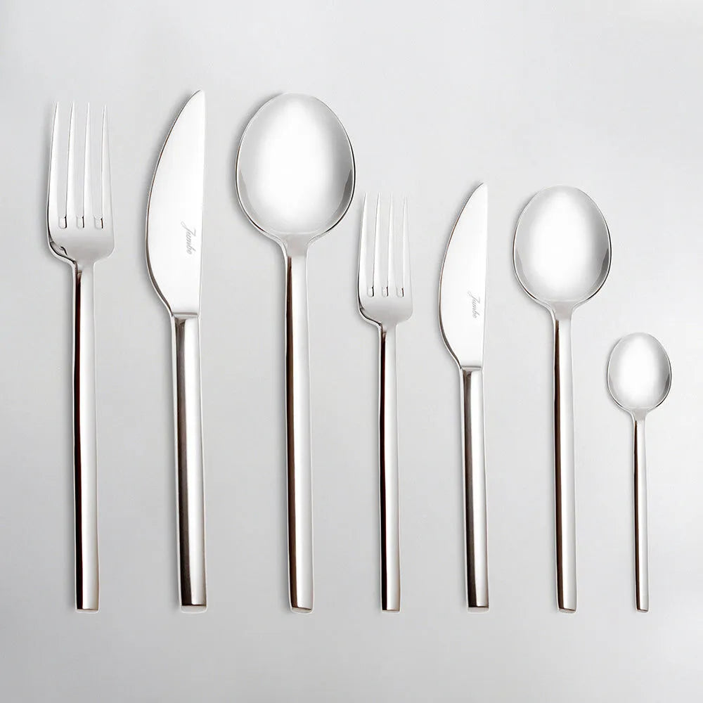 Paslanmaz çelik malzemesi ile uzun ömürlü kullanım sunan takım, çizilmeye ve kararmaya karşı dayanıklıdır. Ergonomik formu sayesinde elde rahat tutuş sağlar ve sofrada modern bir görünüm oluşturur. Bulaşık makinesinde yıkanabilir olması da kullanımı kolaylaştırır.