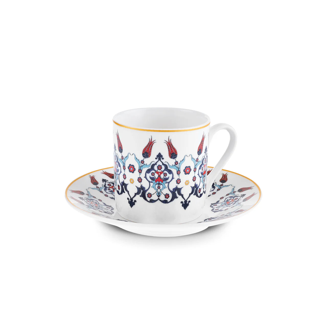 Karaca Haliç Hatay Rumi 12 Parça Kahve Fincanı Takımı – 6 Kişilik, Yeni Bone Porselen