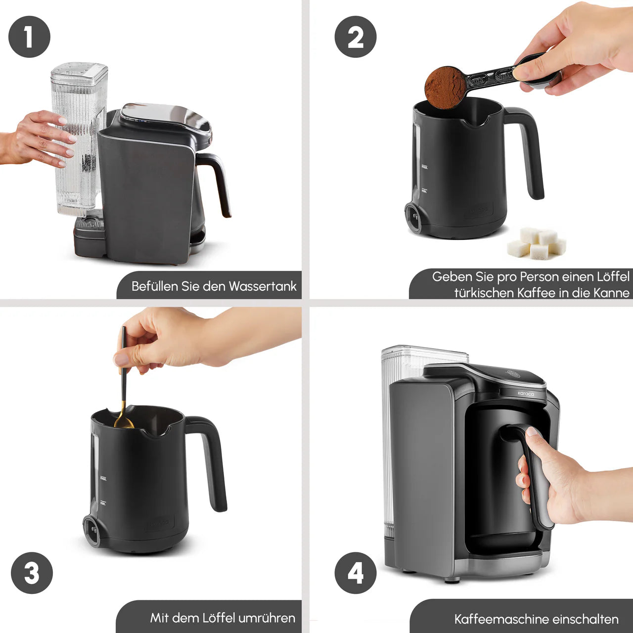 Not: Bu cihaz yalnızca Türk kahvesi ile kullanılmalıdır. Süt, neskafe veya süt tozu ile çalıştırılamaz.