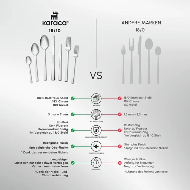 Yüksek kalite 18/10 paslanmaz çelik malzemeden üretilen set, uzun ömürlü ve sağlıklı kullanım sunar. Bulaşık makinesinde yıkanabilir yapısı sayesinde pratik temizlik imkânı sağlar. Karaca’nın Good / Performans segmentinde yer alan Serenity Elegance serisi, estetik ve fonksiyonelliği bir arada sunar.