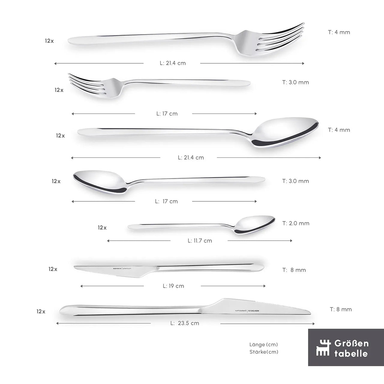 - 12 Yemek Kaşığı (23,6 cm – 8.1 mm)