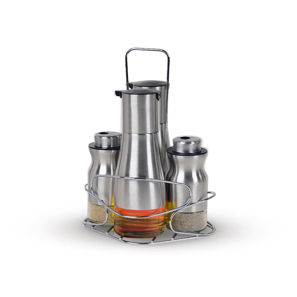 Schafer EDS-Menage 4 Parça Baharatlık ve Yağlık Seti – Metalik Gri, Krom Standlı